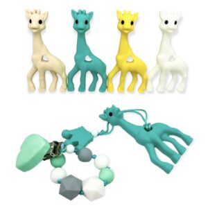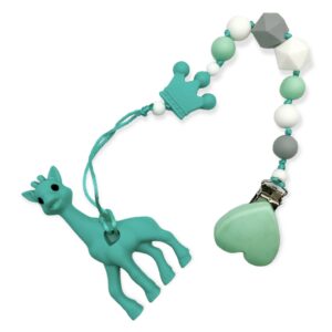 Our giraffe teether toys are 100% silicone toys that your child can hold on to while chewing on it. Your baby will love the soft silicone, and the durable materials mean it can be cleaned easily.