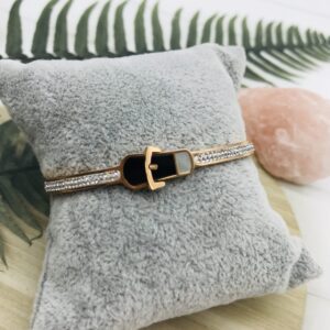 Gold Belt Bracelet with Silver Rhinestones